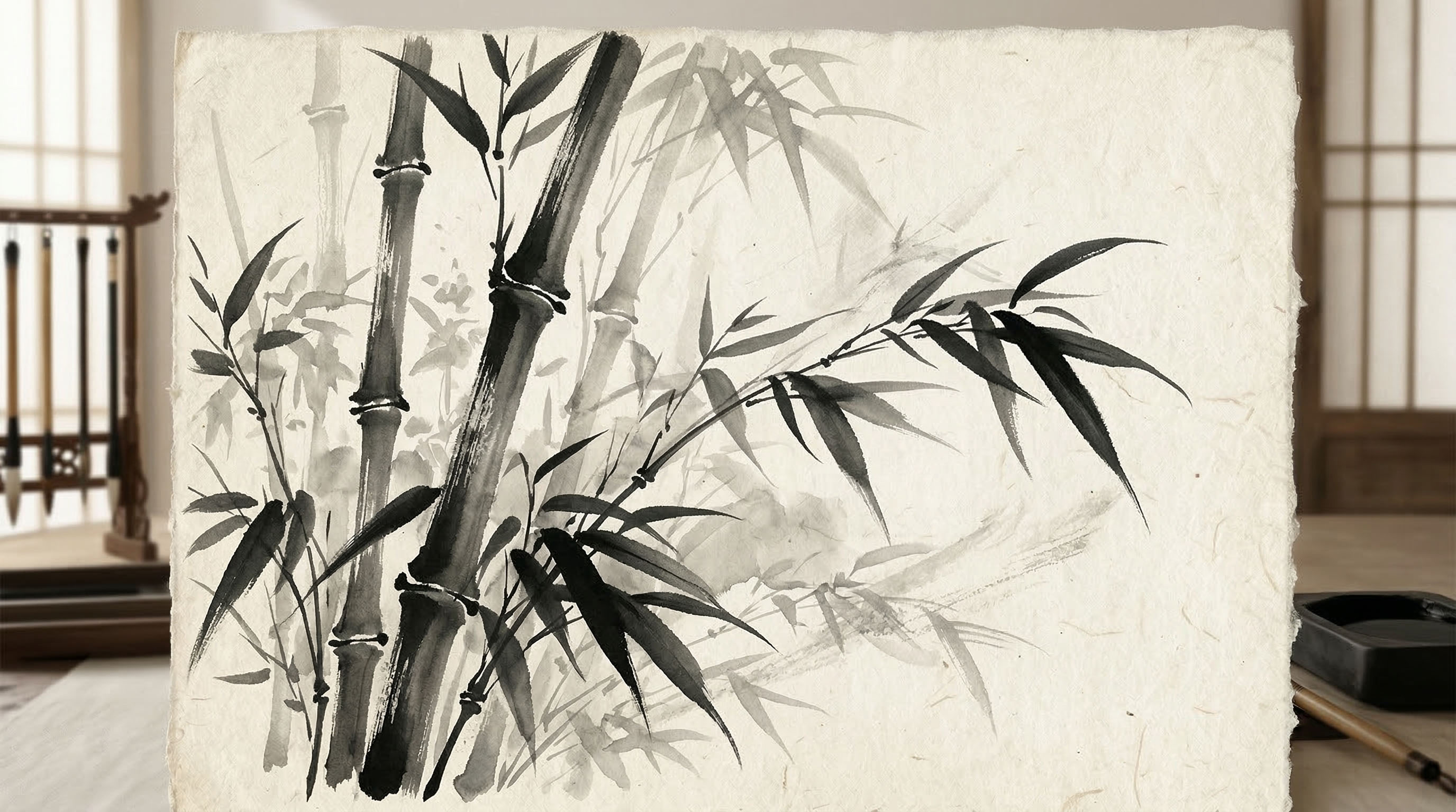A poetic introduction to Chinese ink painting through bamboo, mountains, composition, and the quiet language of empty space.