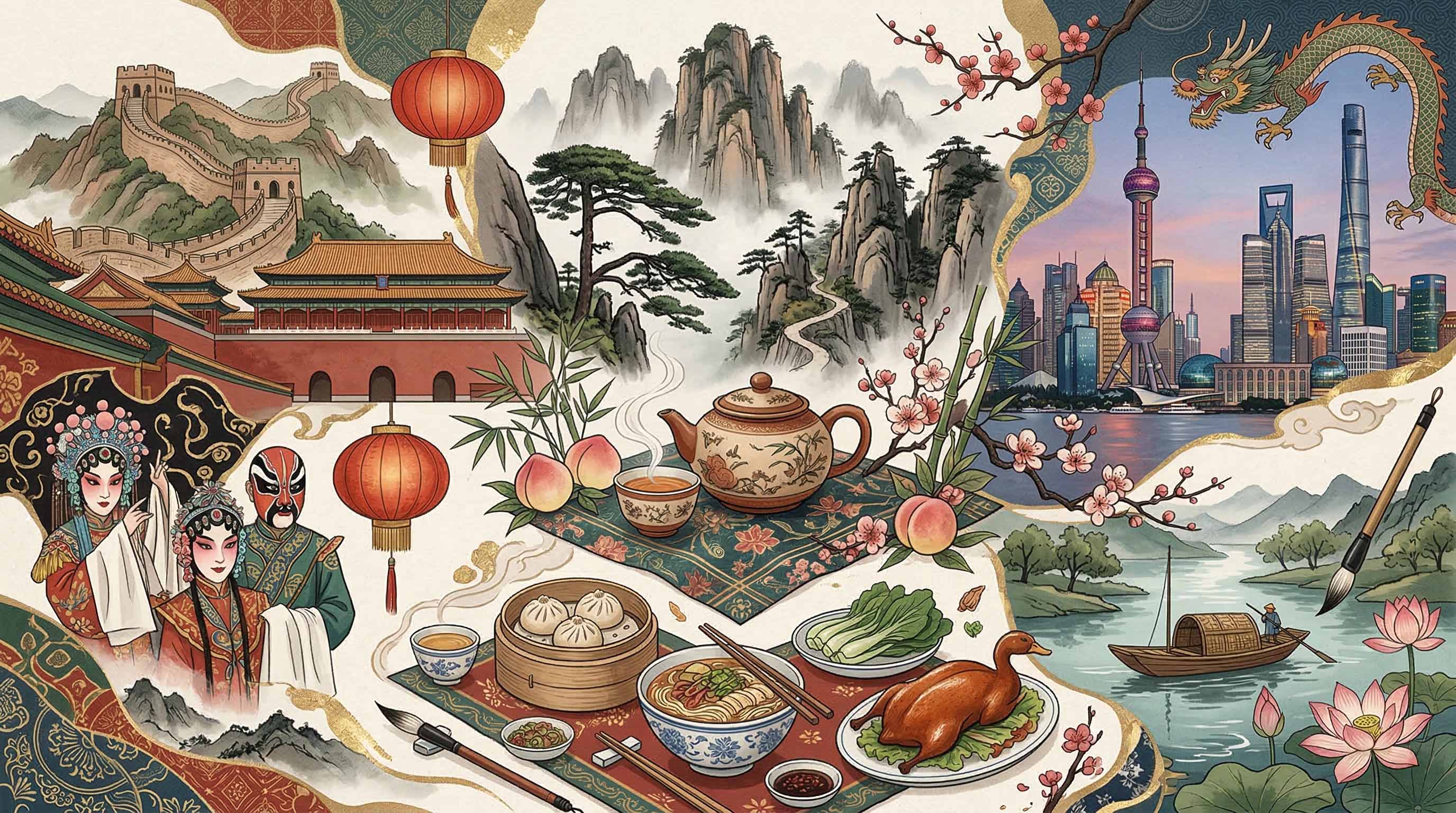 A travel inspiration package that explores China through themes such as tea, food, design, heritage, and contemporary culture.